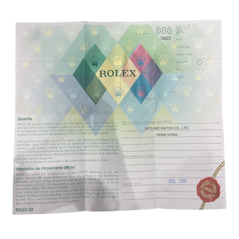 Accompanied by its original warranty certificate from July 2003 and our internal guarantee, this timepiece is a testament to Rolex's commitment to quality and craftsmanship. Elevate your collection with this iconic watch that promises to be a cherished investment for years to come.