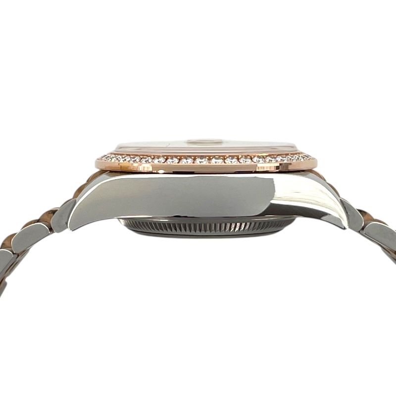 Discover the epitome of elegance with the Rolex Datejust 28, a stunning timepiece that embodies the perfect blend of sophistication and functionality. Crafted from a luxurious combination of pink gold and stainless steel, this exquisite watch features a mesmerizing white shell dial that captures the light beautifully, making it a true statement piece for any discerning lady.