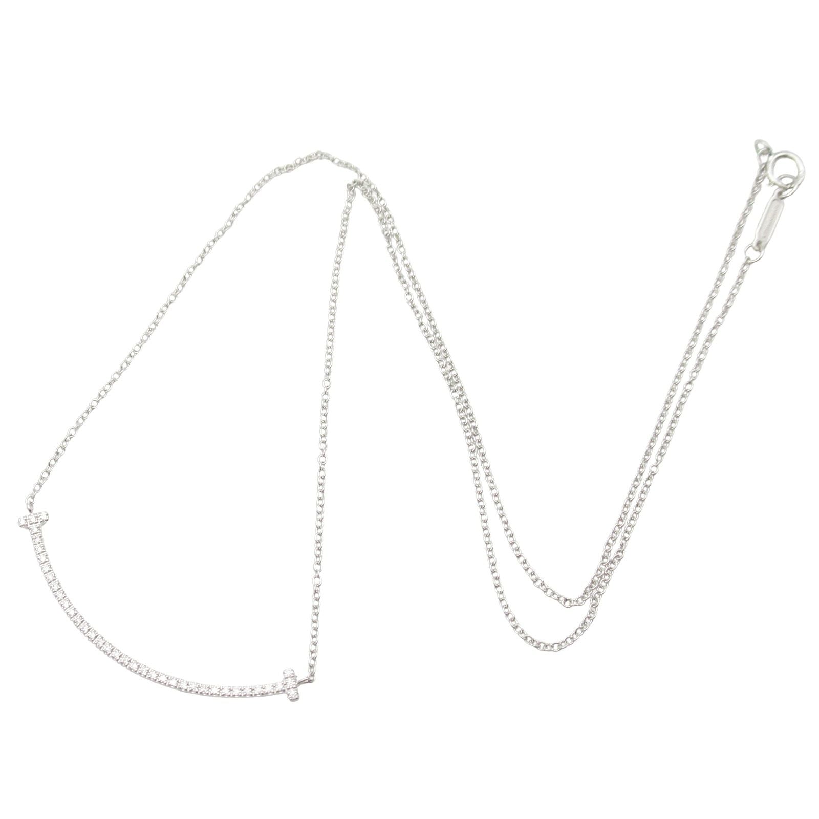 TIFFANY & CO T Smile Necklace in 18K White Gold with Diamonds
