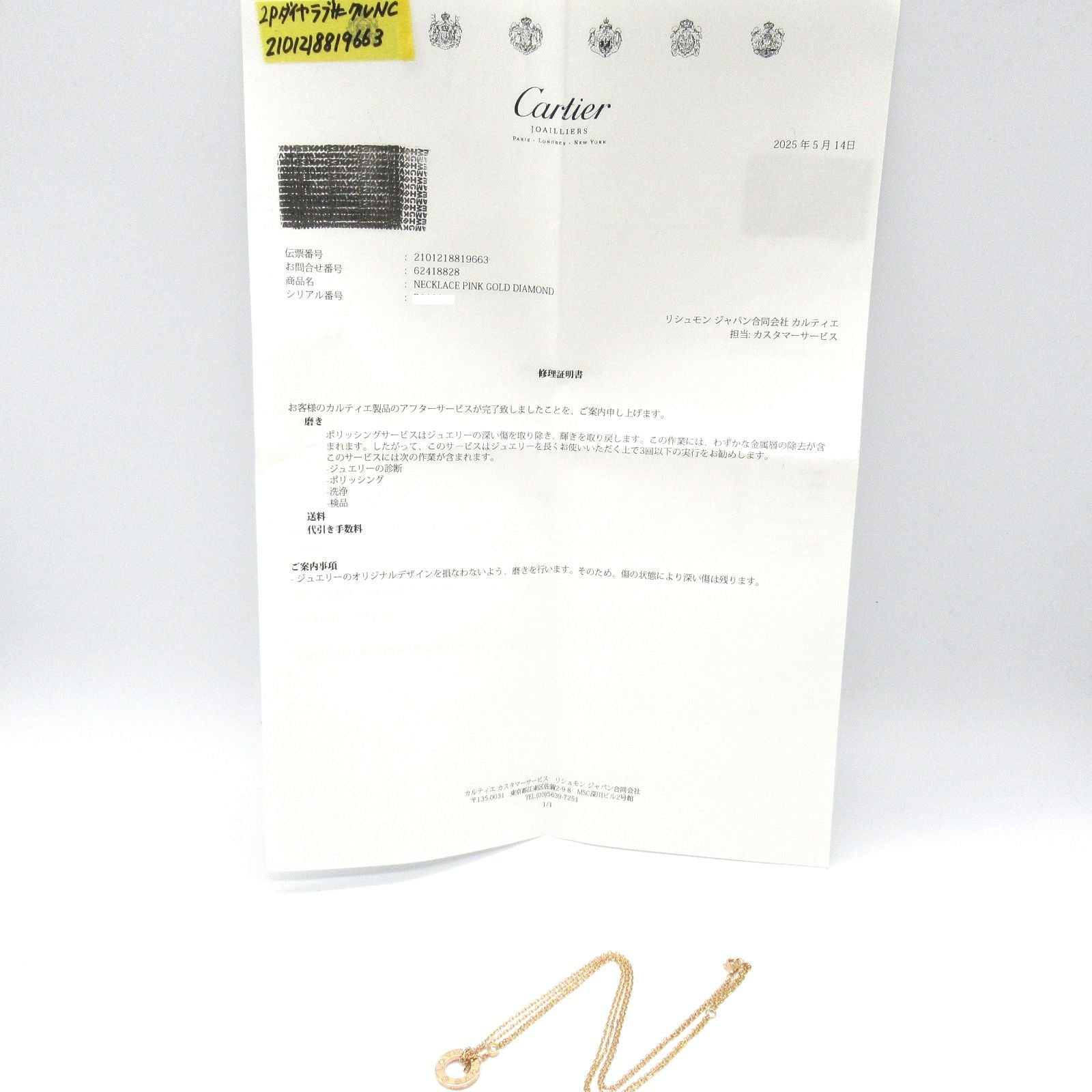 This necklace comes with a repair certificate, ensuring its authenticity and quality. Each piece is meticulously inspected by our experts, guaranteeing that you receive only the finest in luxury jewelry. Elevate your collection with this stunning CARTIER necklace, a true gem that promises to be a cherished addition for years to come.