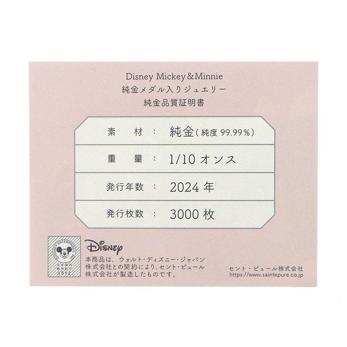 Introducing the exquisite Disney Pendant featuring the beloved characters Mickey Mouse and Minnie Mouse, crafted from the finest K24 yellow gold. This limited edition piece, with only 3,000 units produced for 2024, is a true collector's gem that celebrates the enchanting spirit of Disney.