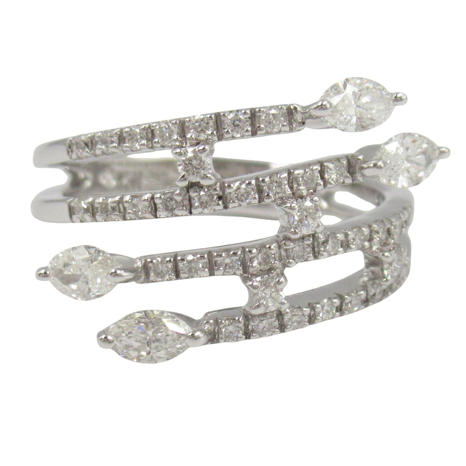 With a weight of approximately 4.5g, this ring is designed for comfort and style, measuring a size 8.5. The ring's width of 3mm and motif dimensions of 22mm by 11mm create a striking silhouette that is both bold and sophisticated. The clear brilliance of the diamond set in premium K18WG enhances its allure, making it an ideal choice for special occasions or as a statement piece in your jewelry collection.