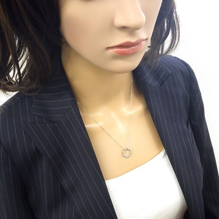 The necklace features a beautifully designed circular motif, measuring approximately 15.0mm in width and 15.4mm in height, suspended from an adjustable chain that extends up to 45.0cm. This versatility allows for a perfect fit, ensuring that it complements any neckline with grace.