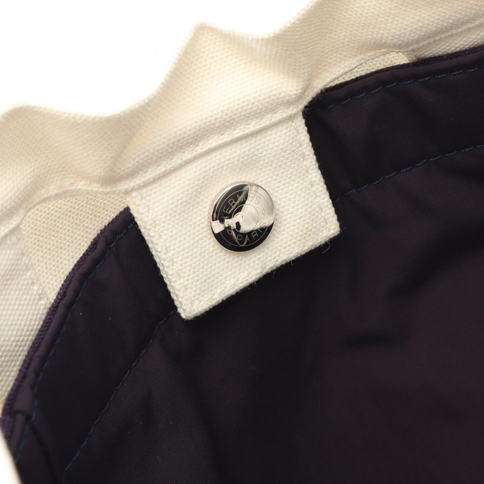 HERMES Adada Tote Bag - White/Blue Canvas - Exquisite Craftsmanship