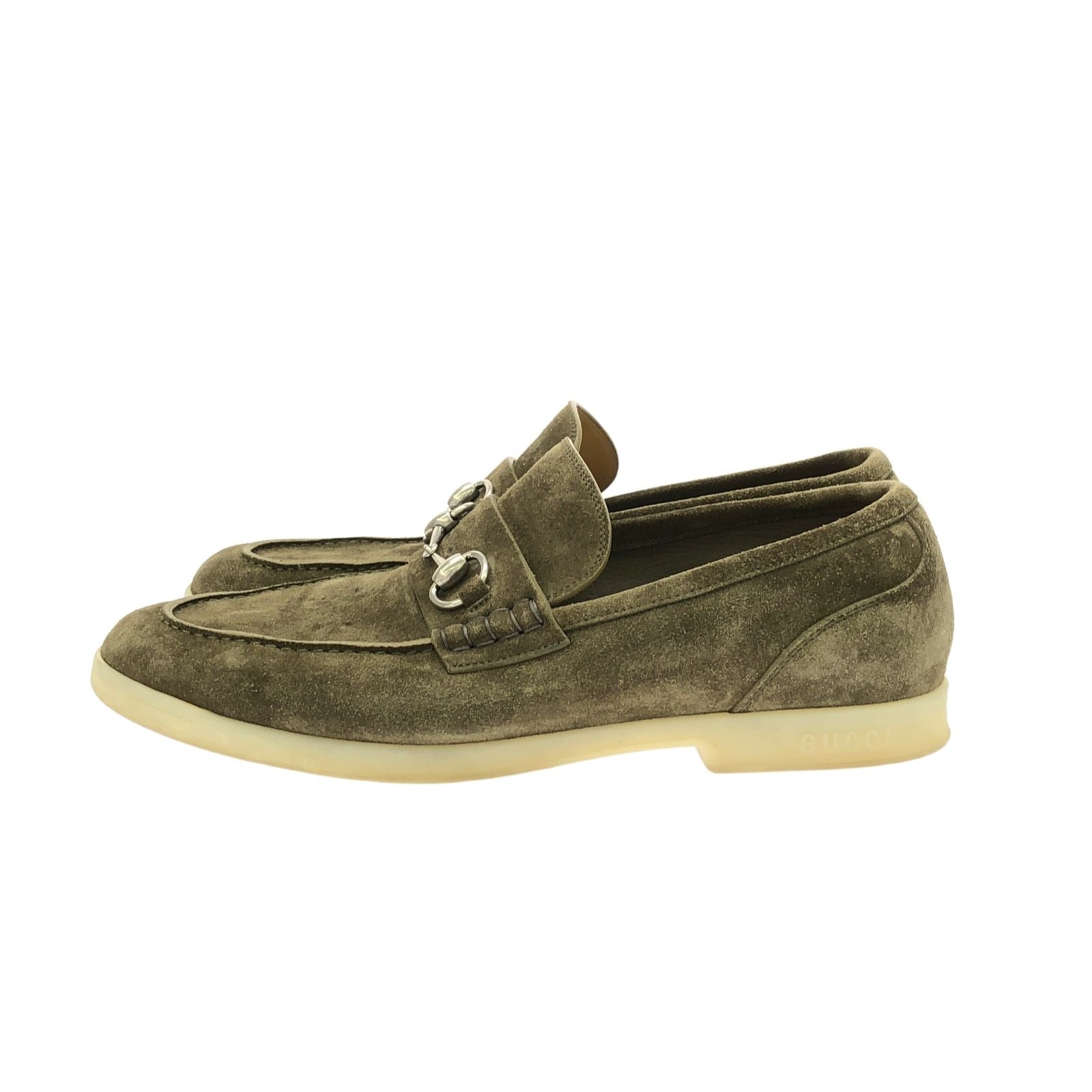 Step into sophistication with these exquisite GUCCI loafers, crafted from premium beige suede. Renowned for their unparalleled craftsmanship, these loafers embody the essence of Italian luxury and style. The sleek silhouette and refined design make them a versatile addition to any discerning gentleman's wardrobe.