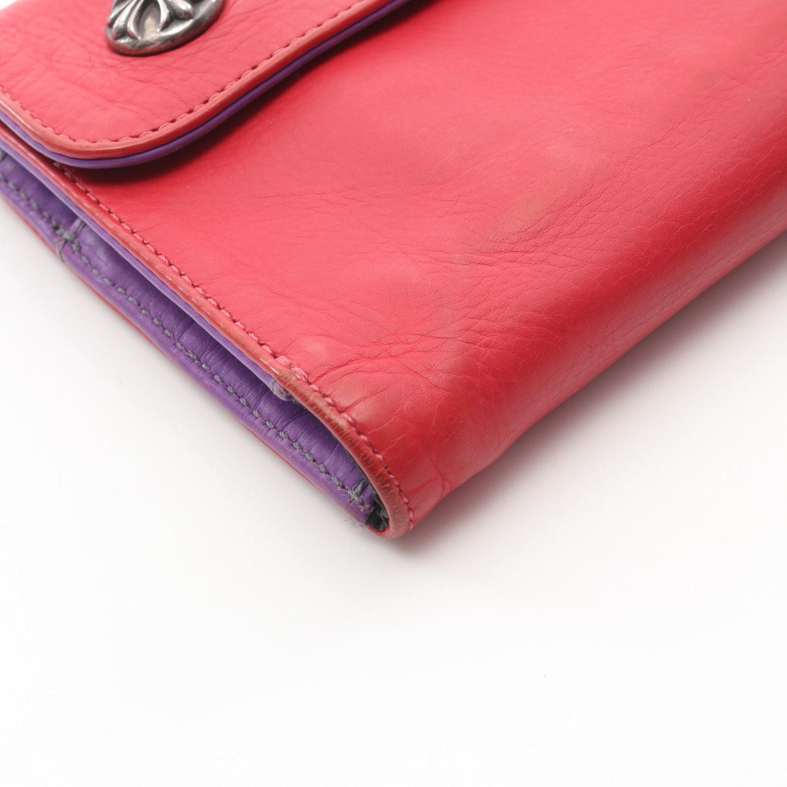 CHROME HEARTS Wave Cross Ball Leather Wallet - Red