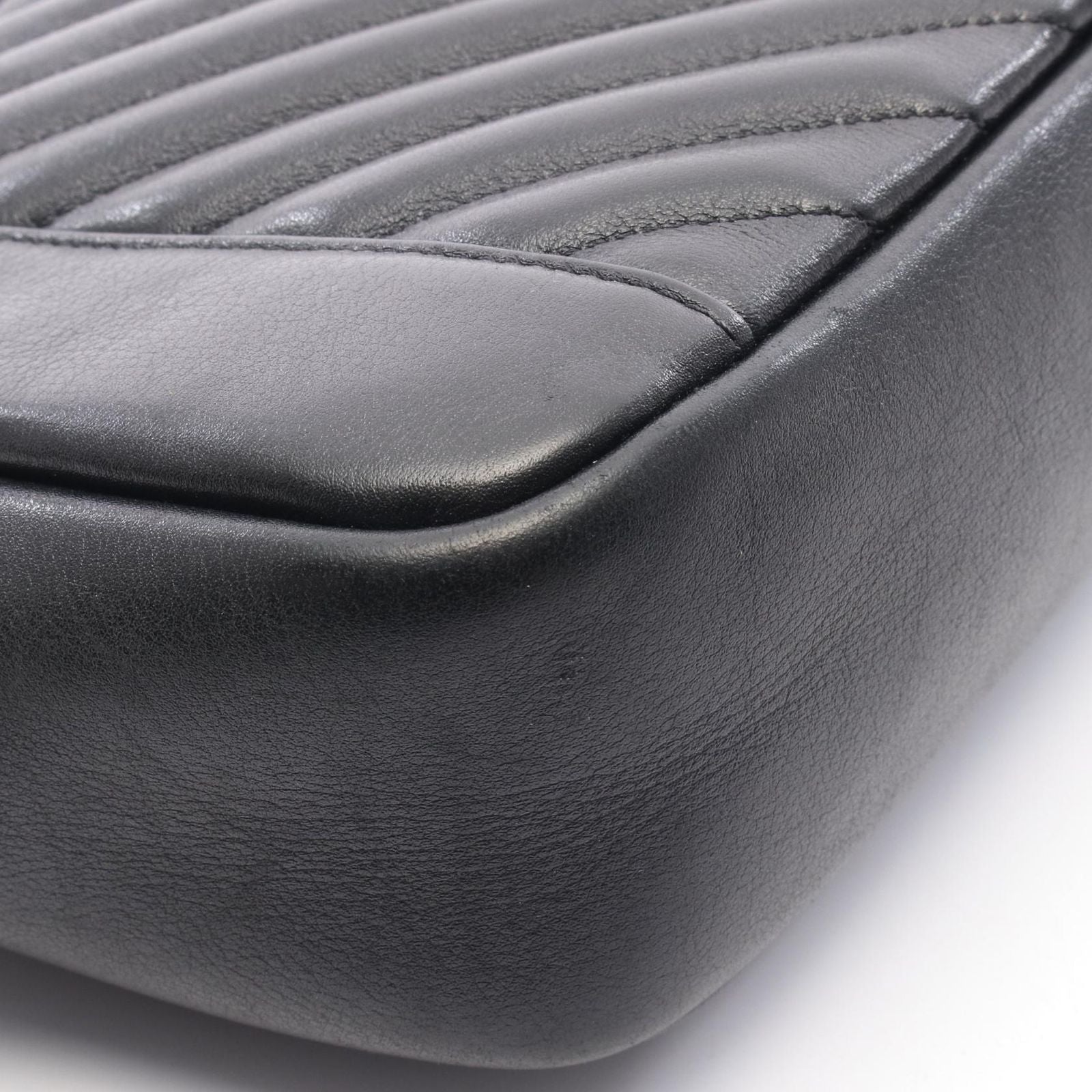 CHANEL V-Stitch Chevron Shoulder Bag in Black Lambskin