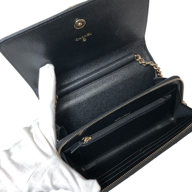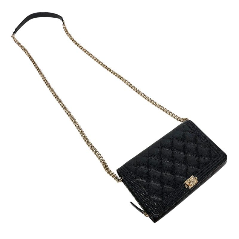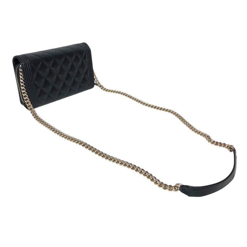 CHANEL Boy Chanel Chain Wallet in Black Caviar with Gold Hardware