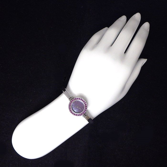 Discover the epitome of elegance with the BVLGARI B.zero1 wristwatch, a stunning piece that embodies the brand's rich heritage and commitment to luxury craftsmanship. This exquisite timepiece features a 22mm stainless steel case adorned with a captivating purple shell dial, complemented by a radiant rhodolite garnet bezel. The harmonious blend of materials and colors creates a striking visual appeal, making it a perfect accessory for the discerning woman.