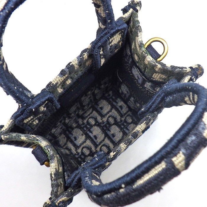 Dior Mini Book Tote Vertical Bag - Blue Beige Oblique Embroidery