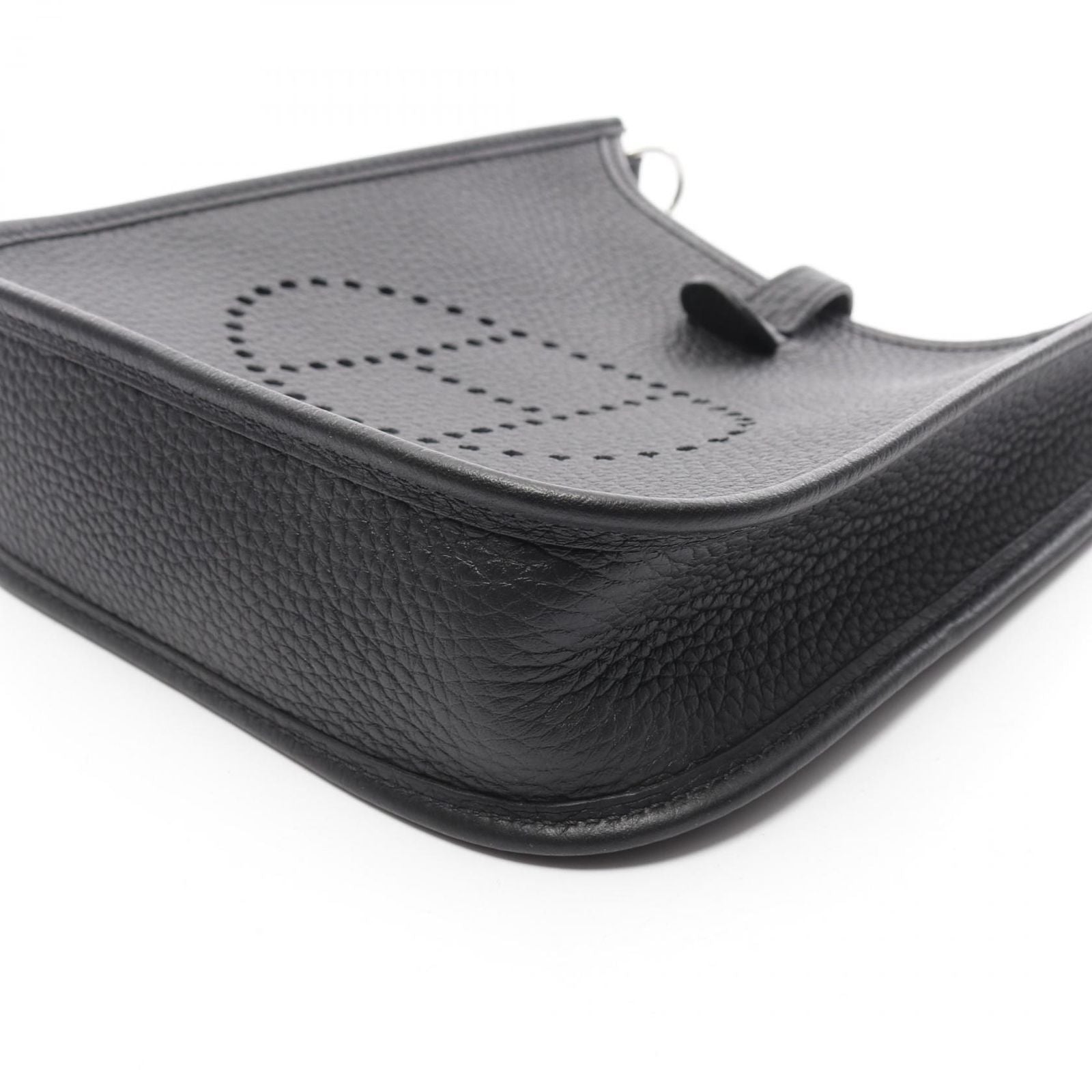 Discover the epitome of luxury with the HERMES Evelyne TPM Shoulder Bag, a stunning accessory that embodies the brand's rich heritage and unparalleled craftsmanship. This exquisite piece, crafted from premium Togo leather, showcases a sleek black finish complemented by elegant silver hardware, making it a versatile addition to any sophisticated wardrobe.