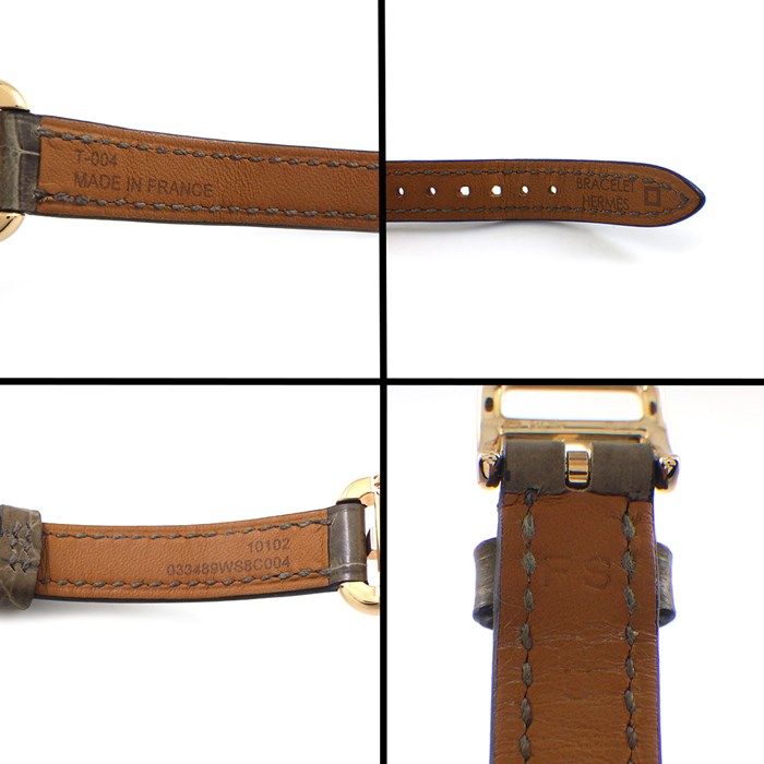 Discover the exquisite craftsmanship of the HERMES Nantucket NA2.170/W049575WW00, a stunning rectangular timepiece that embodies elegance and sophistication. This luxurious watch features a captivating white shell dial, beautifully complemented by a grey alligator leather strap and an 18K pink gold case. The meticulous attention to detail and the use of premium materials make this watch a true statement piece for the discerning collector.