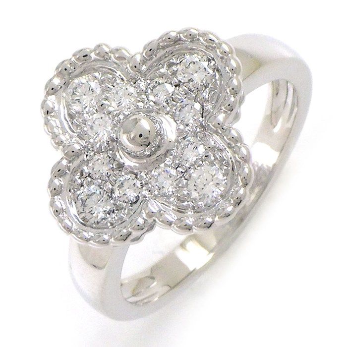 Van Cleef & Arpels Vintage Alhambra Diamond Ring in 18K White Gold