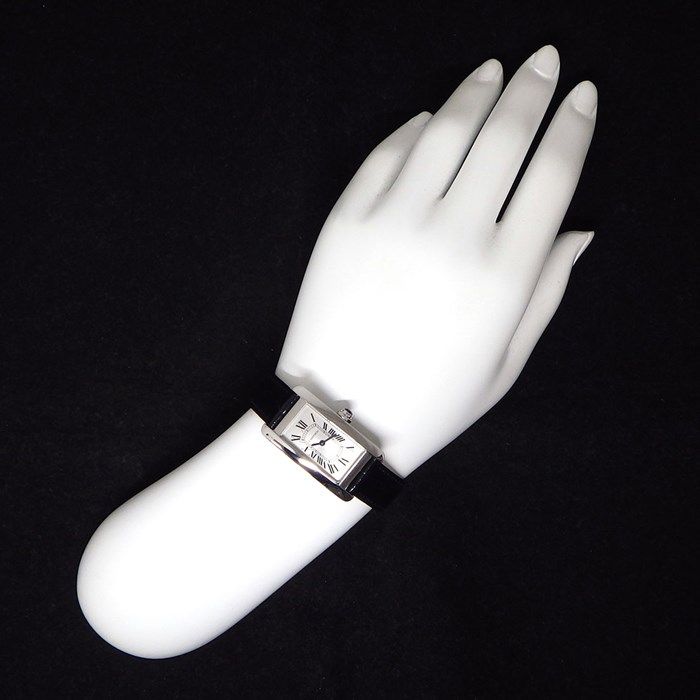 Discover the epitome of elegance with the Cartier Tank Américaine SM WSTA0043, a stunning timepiece that embodies the brand's rich heritage and unparalleled craftsmanship. Renowned for its iconic design, this exquisite watch features a lustrous silver dial adorned with Roman numerals, perfectly complemented by a luxurious black crocodile leather strap. The stainless steel case, measuring approximately 19.0mm in width and 34.0mm in height, showcases the timeless silhouette that has captivated watch enthusiasts for generations.