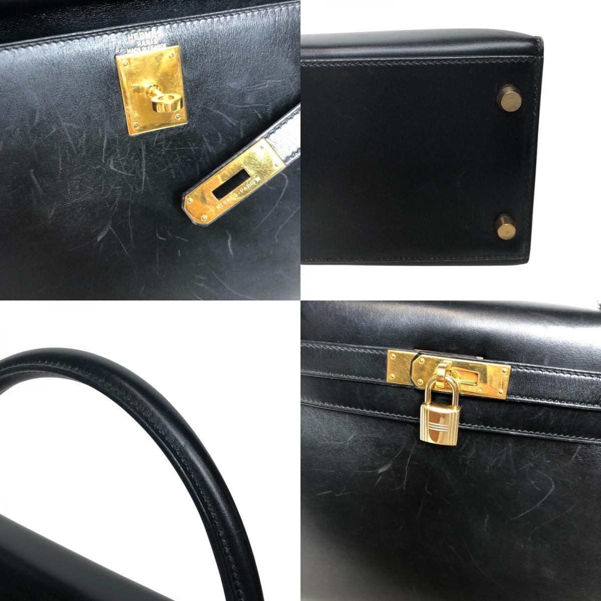 HERMES Kelly 28 Black Box Calf Shoulder Bag with Gold Hardware