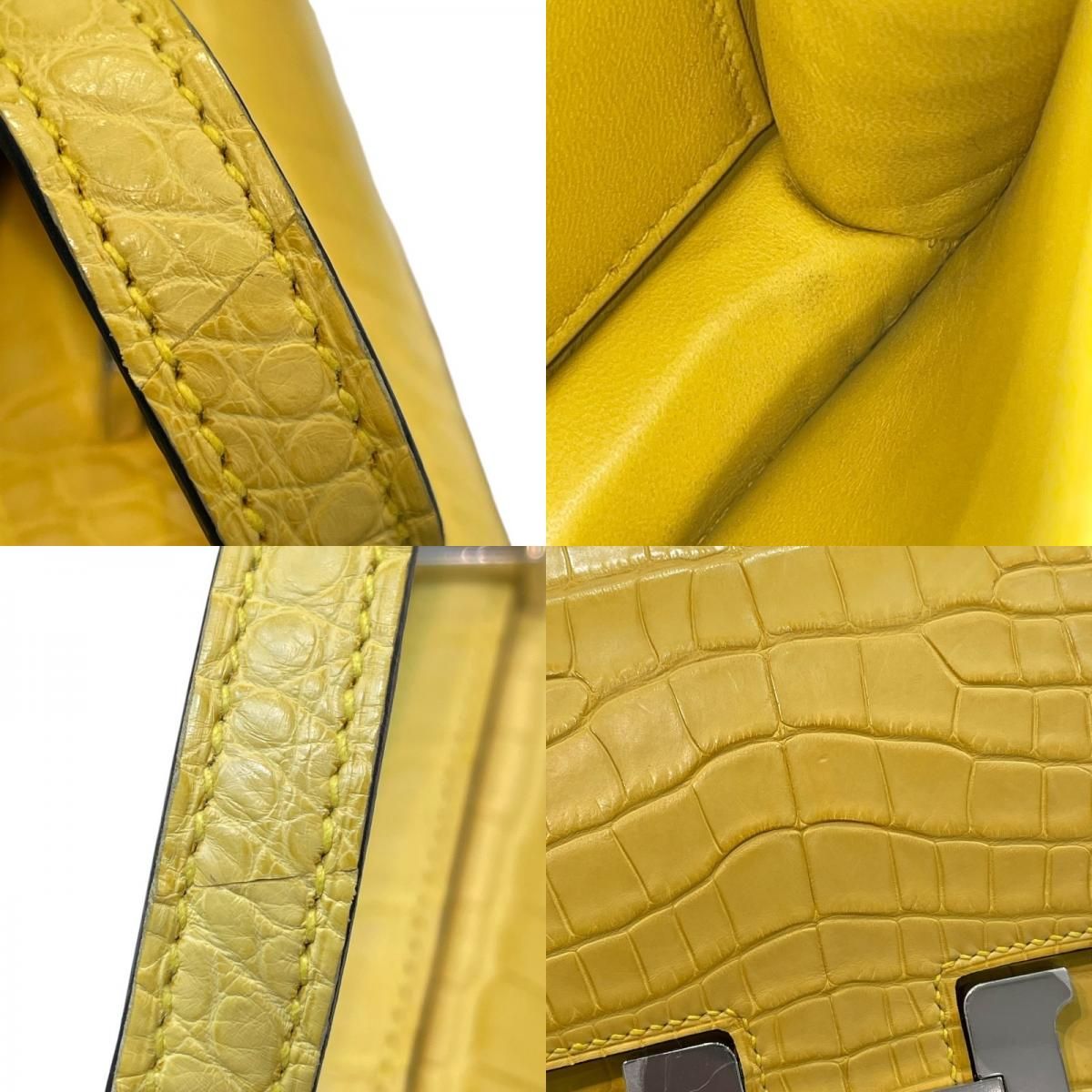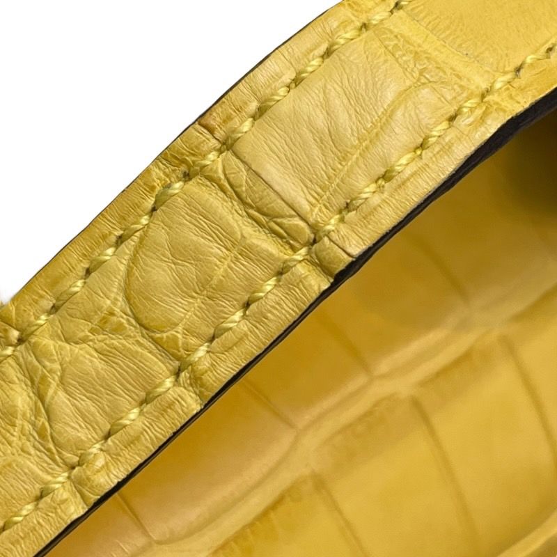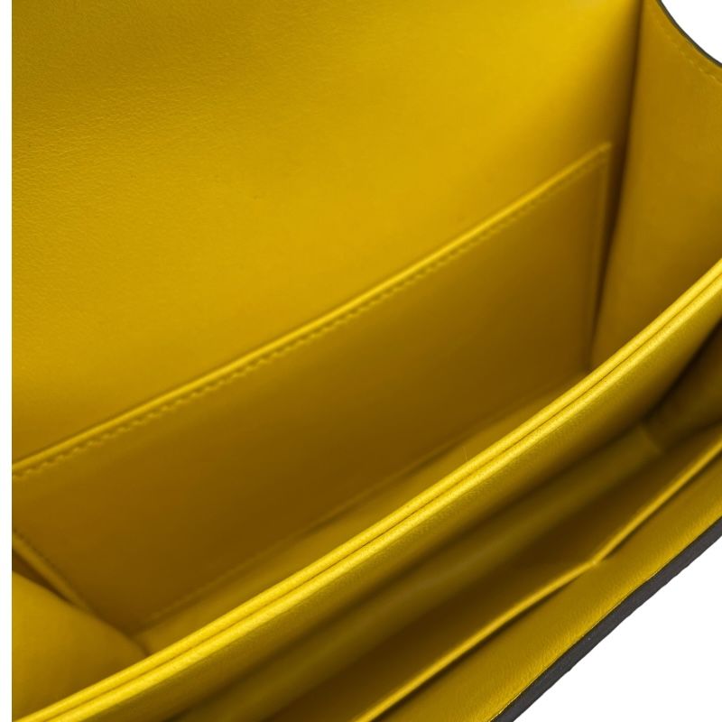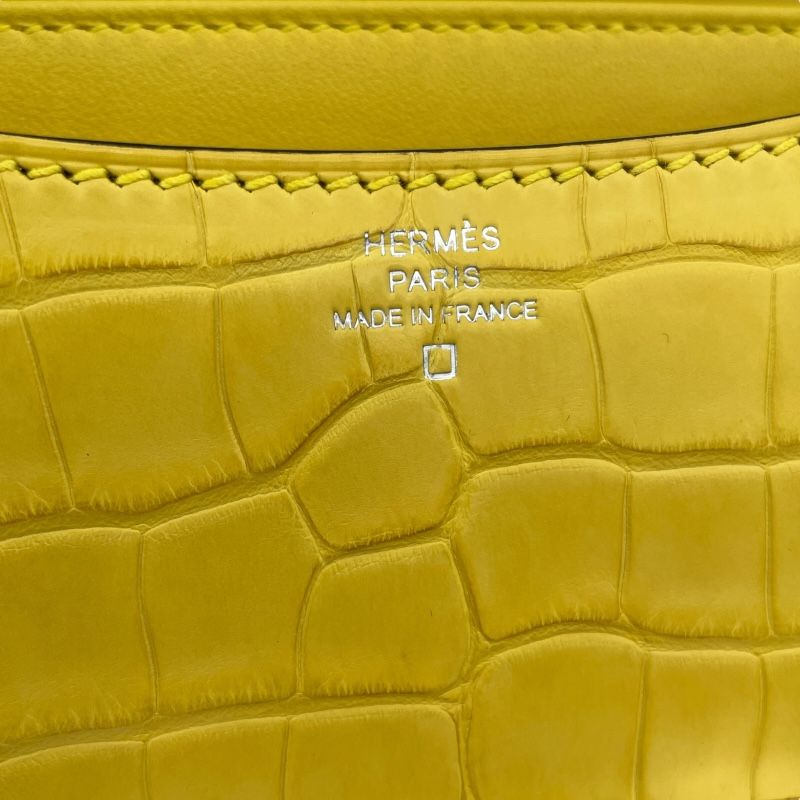 Introducing the exquisite HERMES Constance 3 Mini Miroir, a true masterpiece of luxury craftsmanship. This stunning shoulder bag, crafted from premium alligator matte leather, showcases the iconic HERMES design that has captivated fashion connoisseurs worldwide. The vibrant Mimosa color, complemented by elegant silver hardware, exudes sophistication and charm, making it a perfect accessory for the discerning lady.