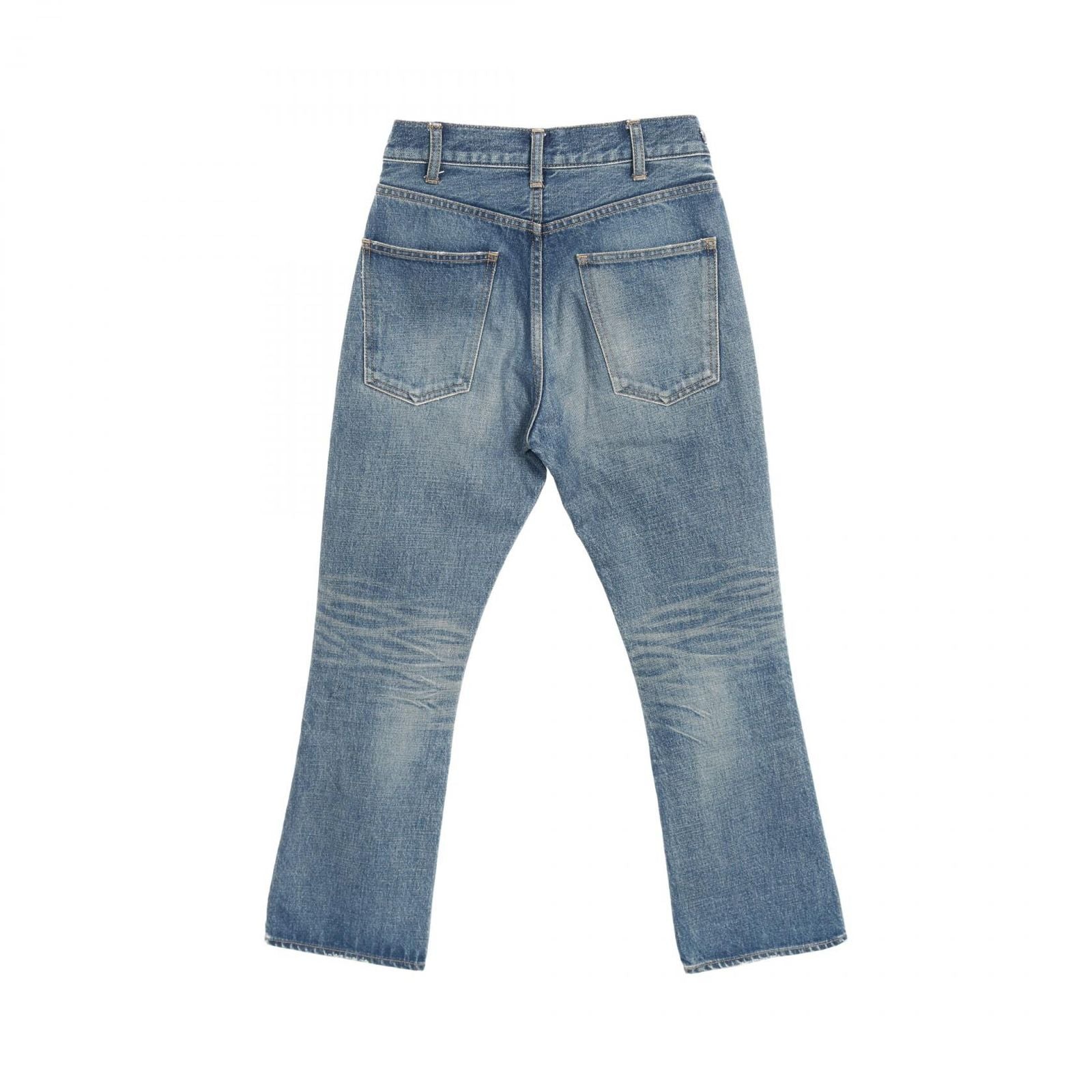 Designed for the discerning woman, the pants feature a flattering silhouette that accentuates the waist and elongates the legs. The subtle wear adds character, showcasing the unique journey of this timeless piece. Perfect for both casual outings and upscale events, these denim pants are a versatile addition to any luxury collection.