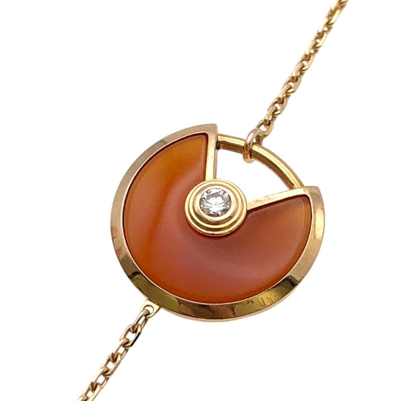 Indulge in the exquisite craftsmanship of the Cartier Amulet Bracelet, a stunning piece that embodies the essence of luxury and sophistication. Crafted from K18 pink gold, this bracelet features a captivating orange gold hue that radiates warmth and elegance. Adorned with sparkling diamonds, it is designed for the discerning woman who appreciates the finer things in life.