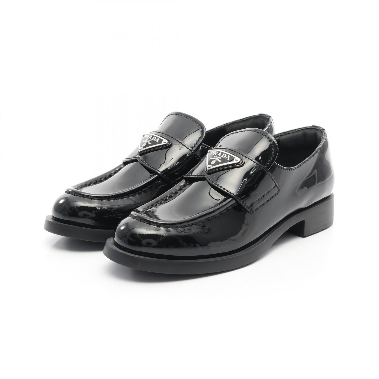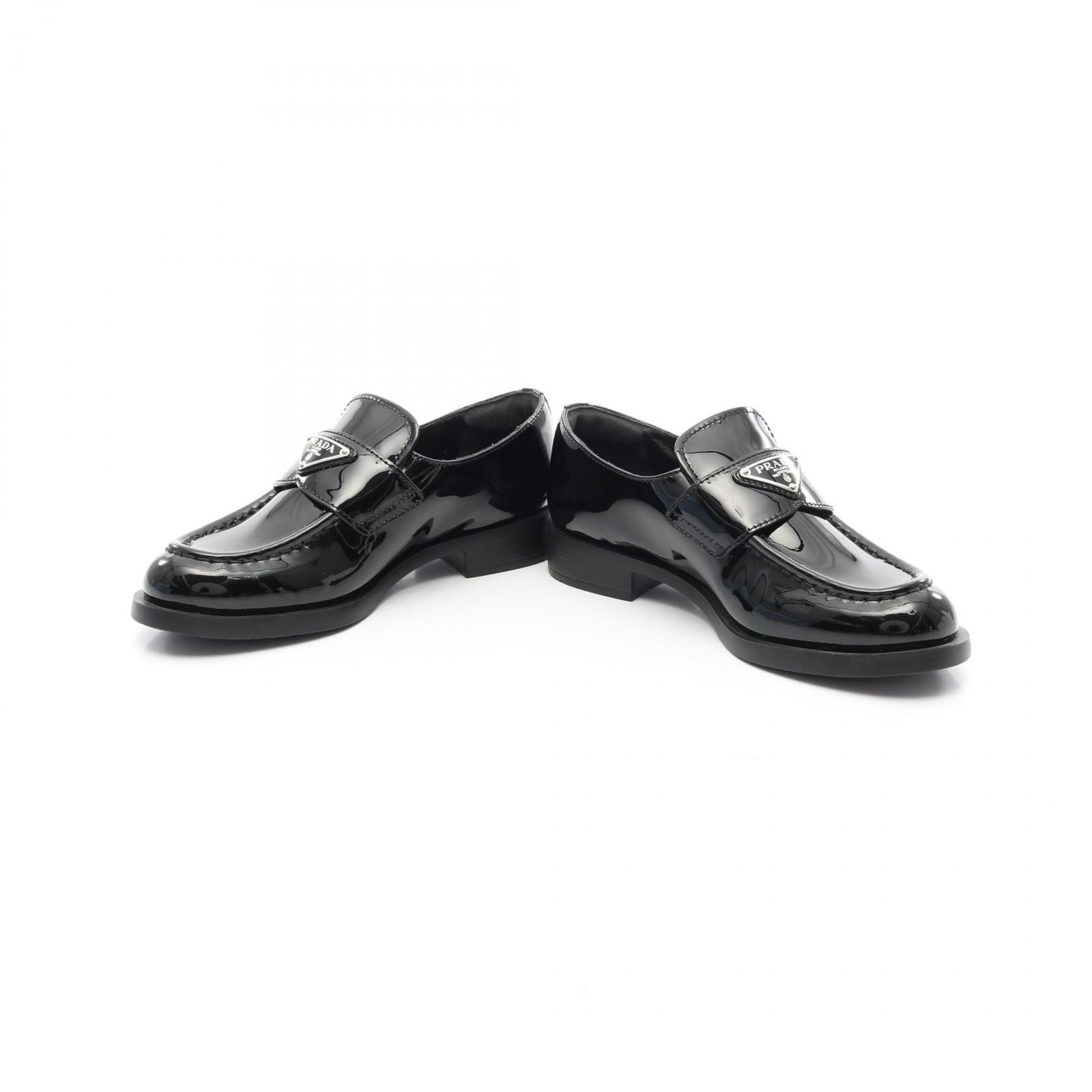 PRADA Triangle Logo Loafers in Black Patent Leather - Unworn Luxury