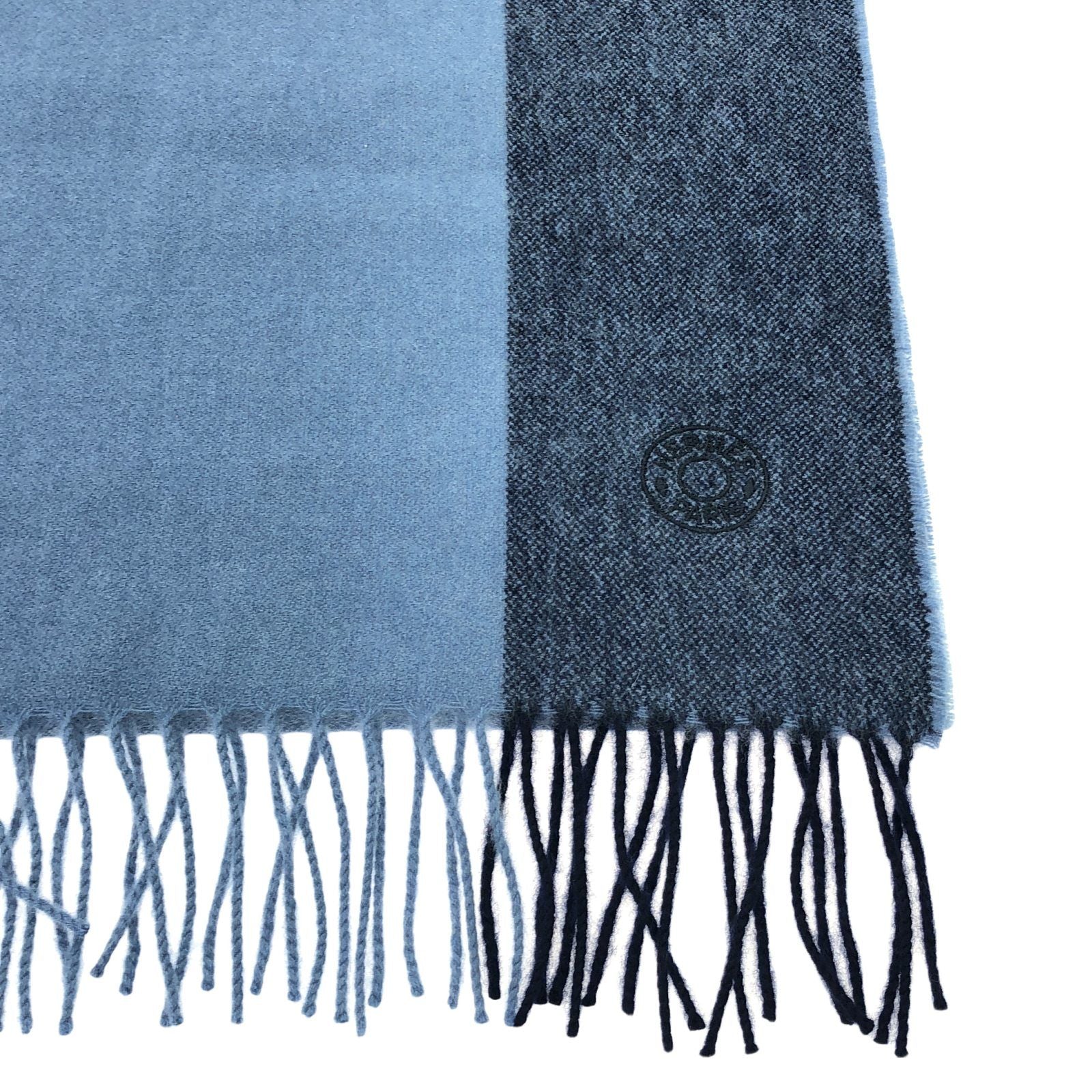 Indulge in the exquisite craftsmanship of this HERMES cashmere scarf, a quintessential accessory that embodies the essence of luxury and sophistication. Renowned for its unparalleled quality, HERMES has been a symbol of elegance since its inception in 1837. This stunning scarf, presented in a serene blue hue, is crafted from the finest cashmere, offering a sumptuous feel against the skin.