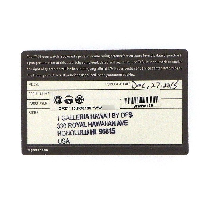 Presented in its original box with a warranty certificate dated December 2015, this timepiece is in excellent condition, showcasing minimal signs of wear. The TAG Heuer Formula 1 is not just a watch; it is a statement of luxury and a testament to the artistry of Swiss watchmaking.