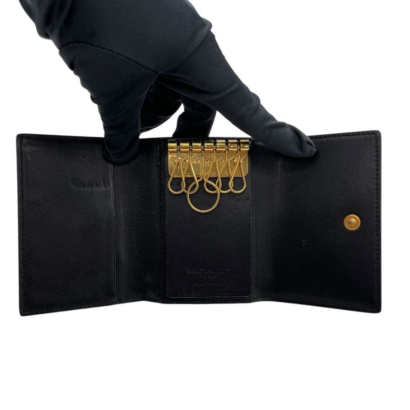 SAINT LAURENT 6-Key Holder in Black Calf Leather - Timeless Elegance