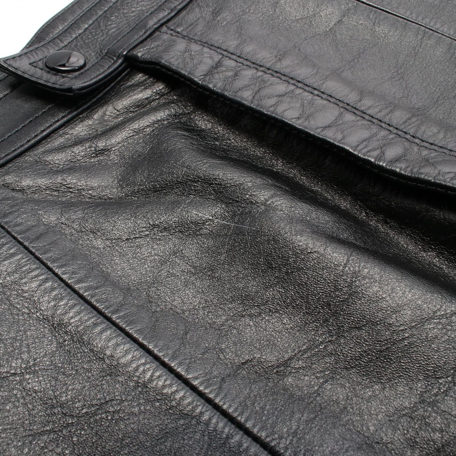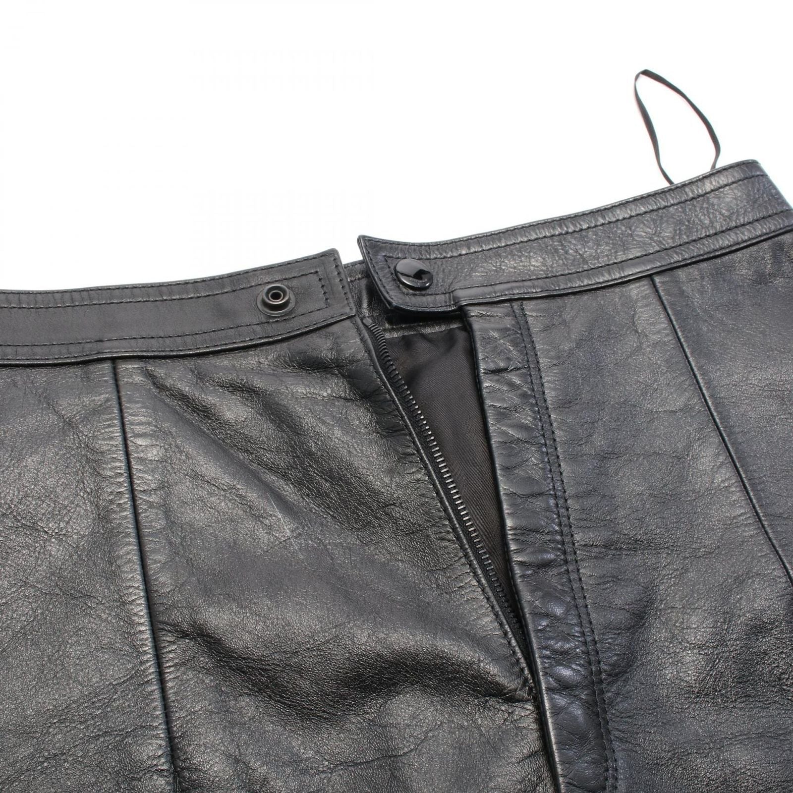 Made from premium lamb leather, this skirt showcases a sleek silhouette that flatters the figure while offering unparalleled comfort. The classic black hue ensures versatility, making it an essential addition to any high-end wardrobe. With a total length of approximately 39cm and a waist measurement of about 70cm, it is tailored to perfection for a refined fit.