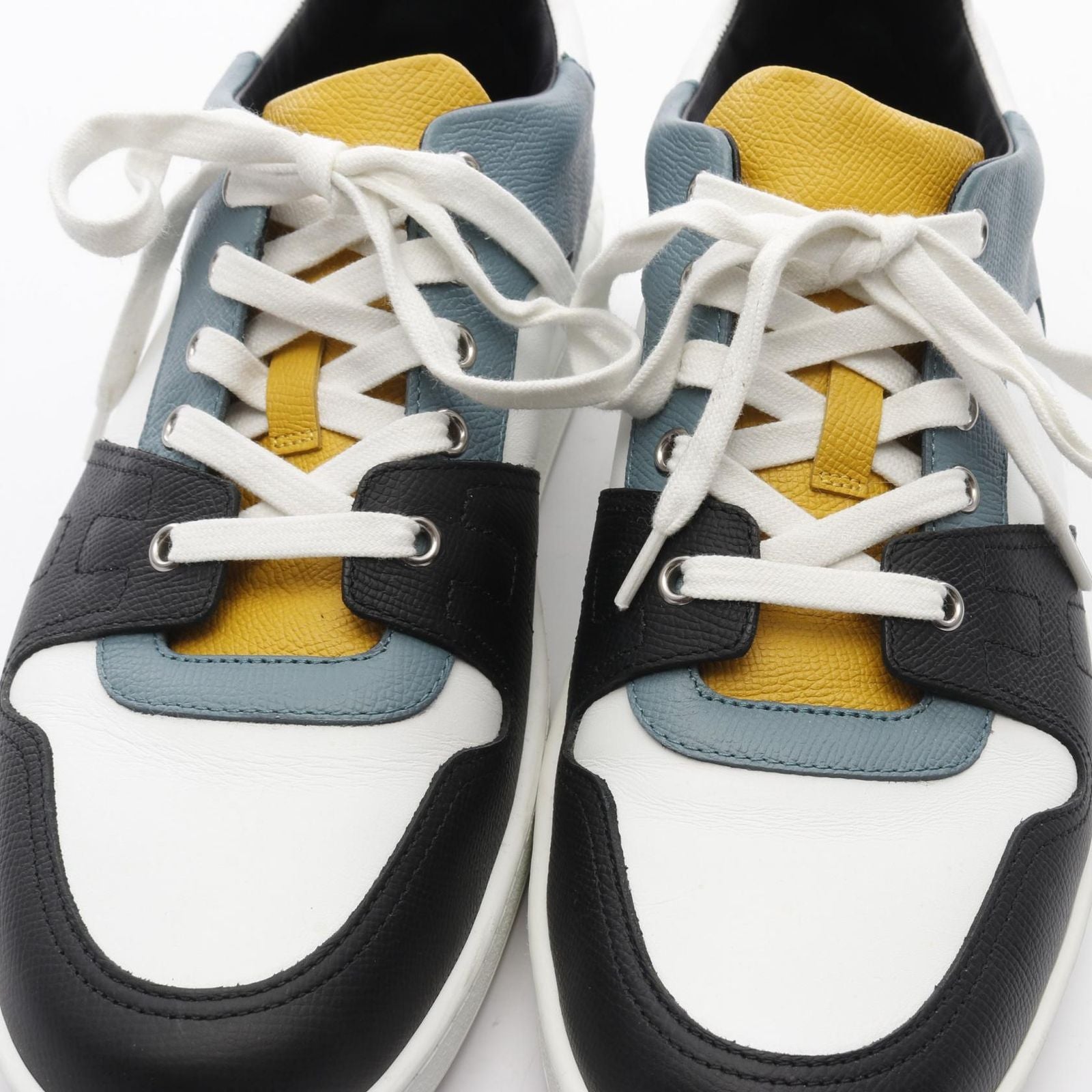 HERMES Leather Sneakers in Green & Yellow - Size 41