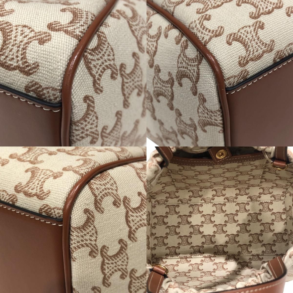 CELINE Small Cabas Drawstring Bag - White & Tan Textile