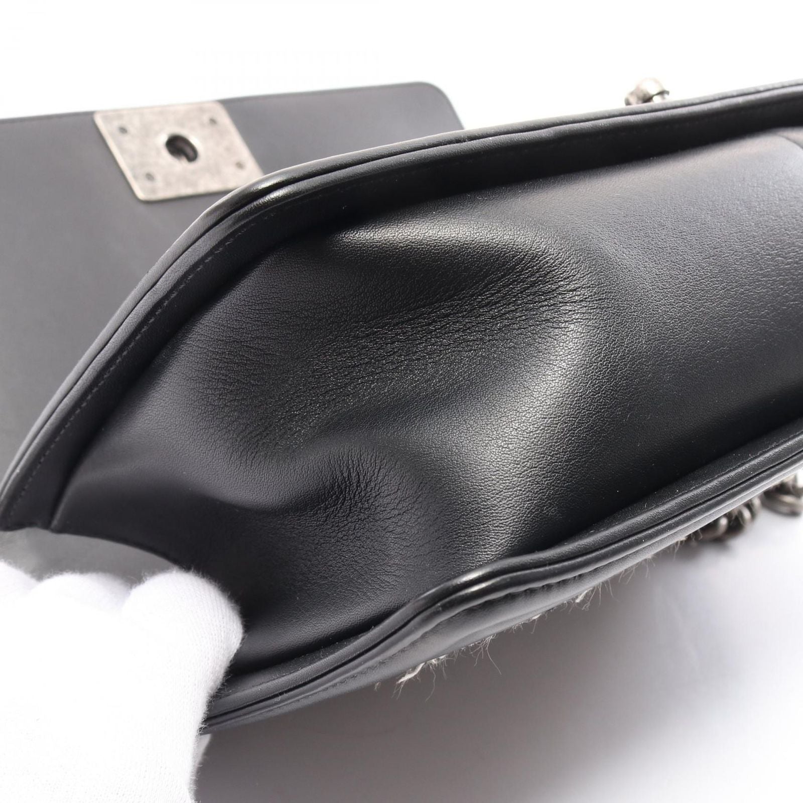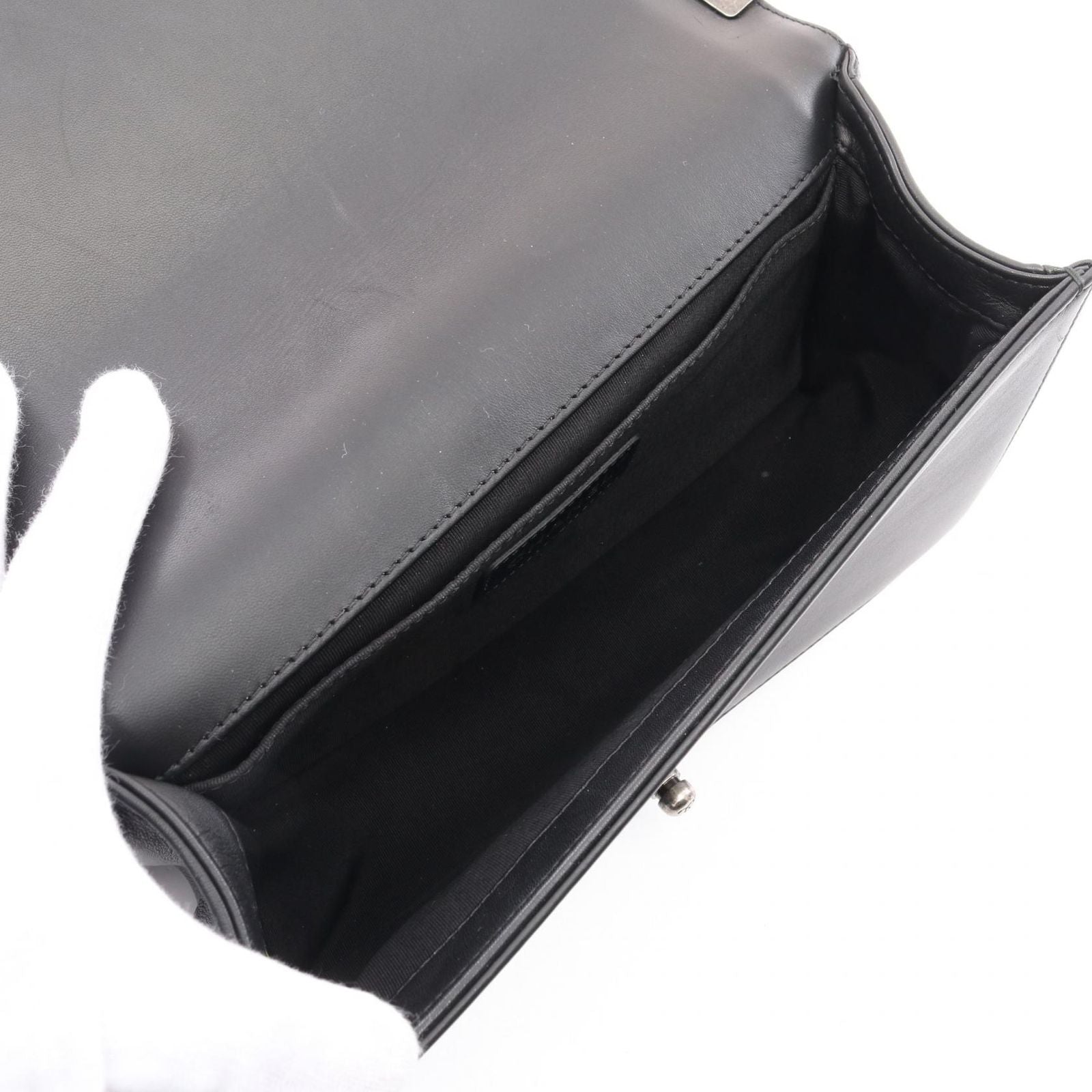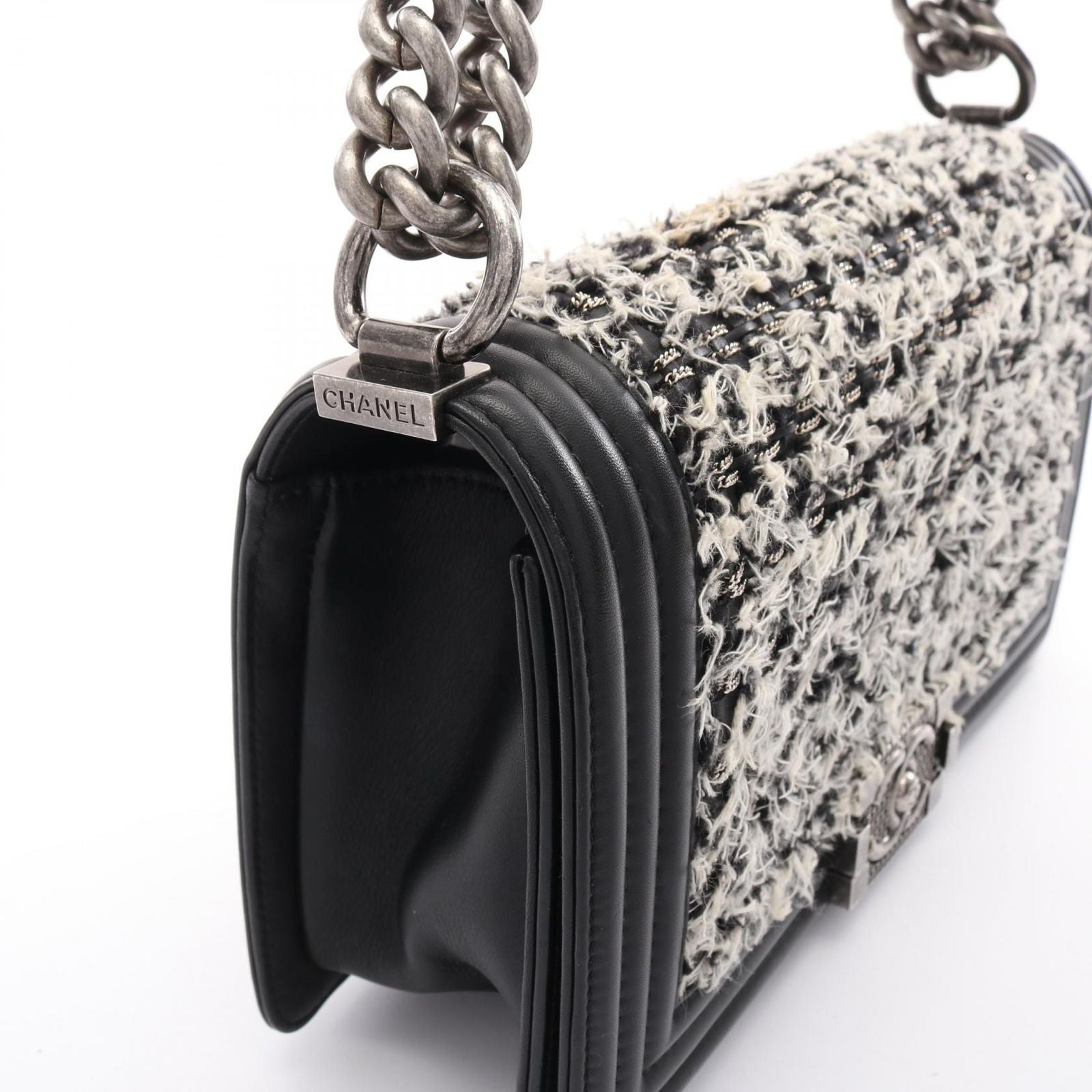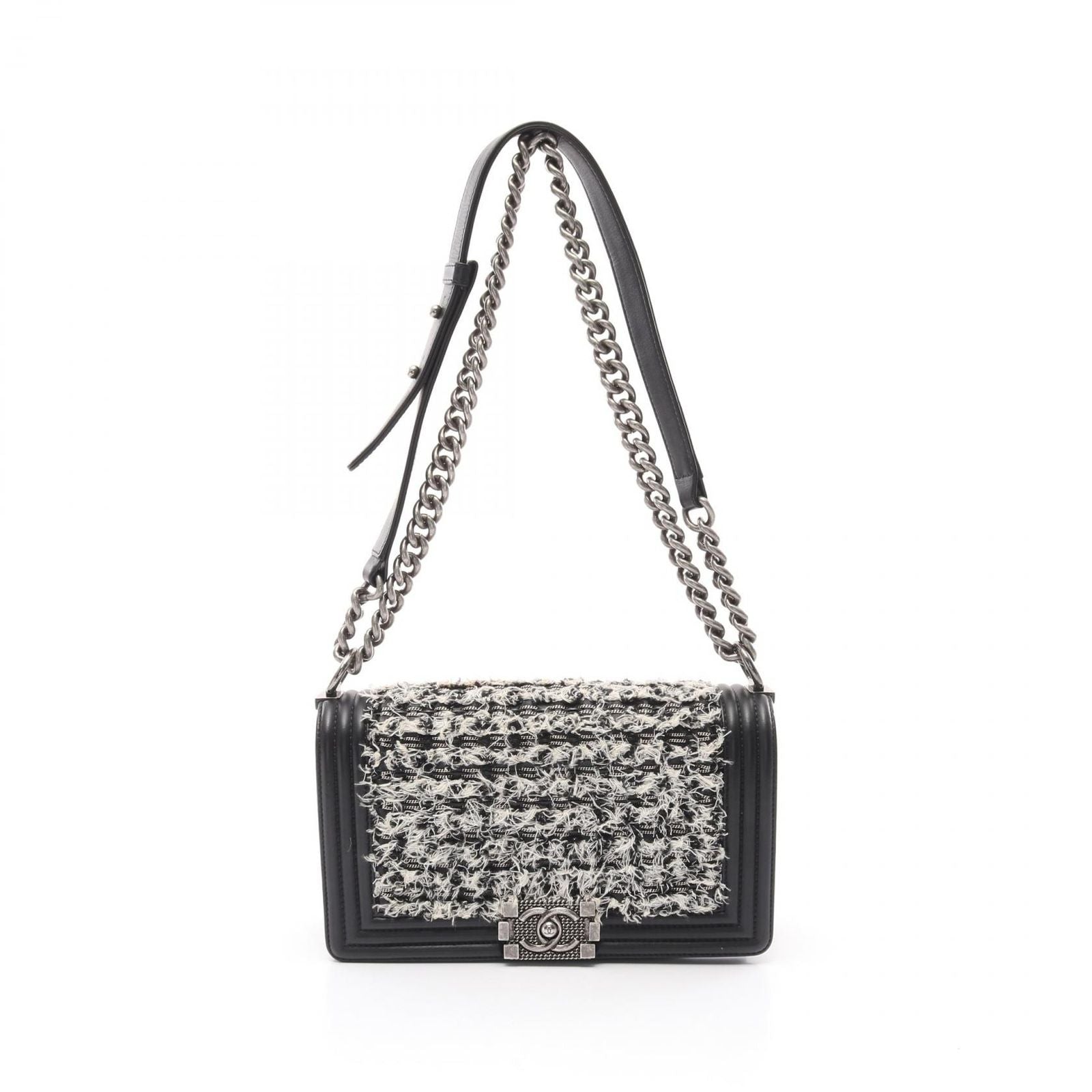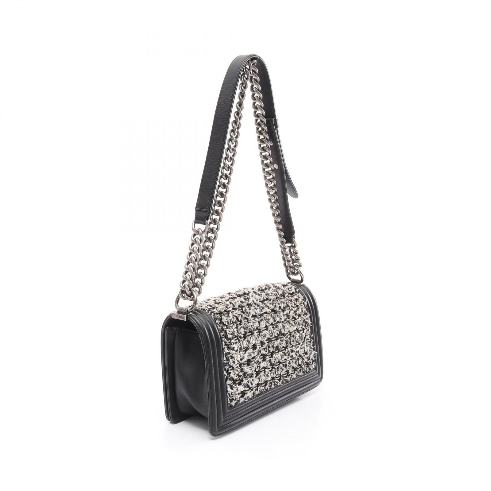 With dimensions of approximately W 25cm x H 14.5cm x D 7cm, it offers ample space for your essentials while maintaining a sleek silhouette. The Boy Chanel chain shoulder strap adds a touch of modernity, allowing for versatile styling options. This bag is not just an accessory; it is a statement of elegance and refinement.