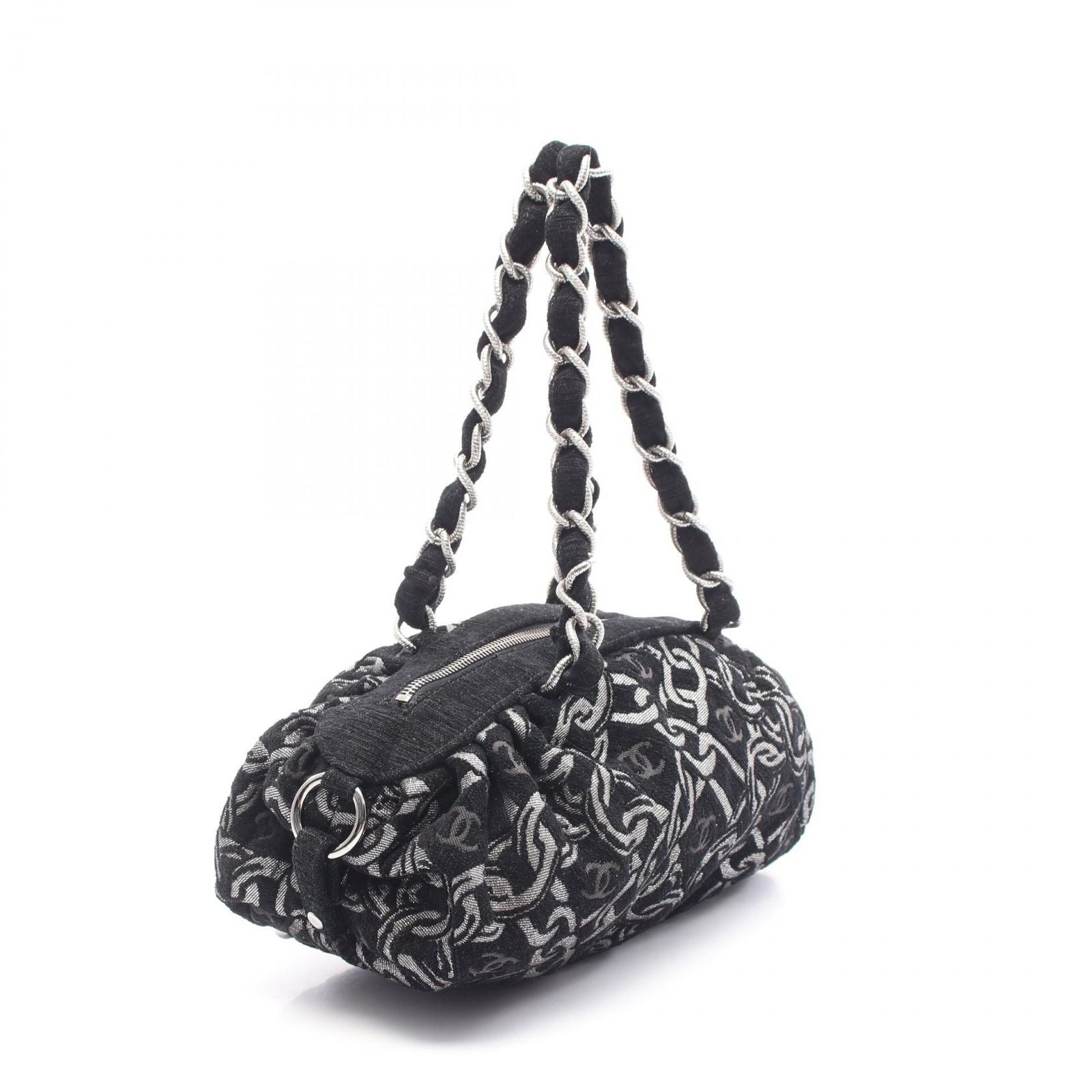 CHANEL Coco Mark Black Fabric Chain Handbag - Timeless Elegance