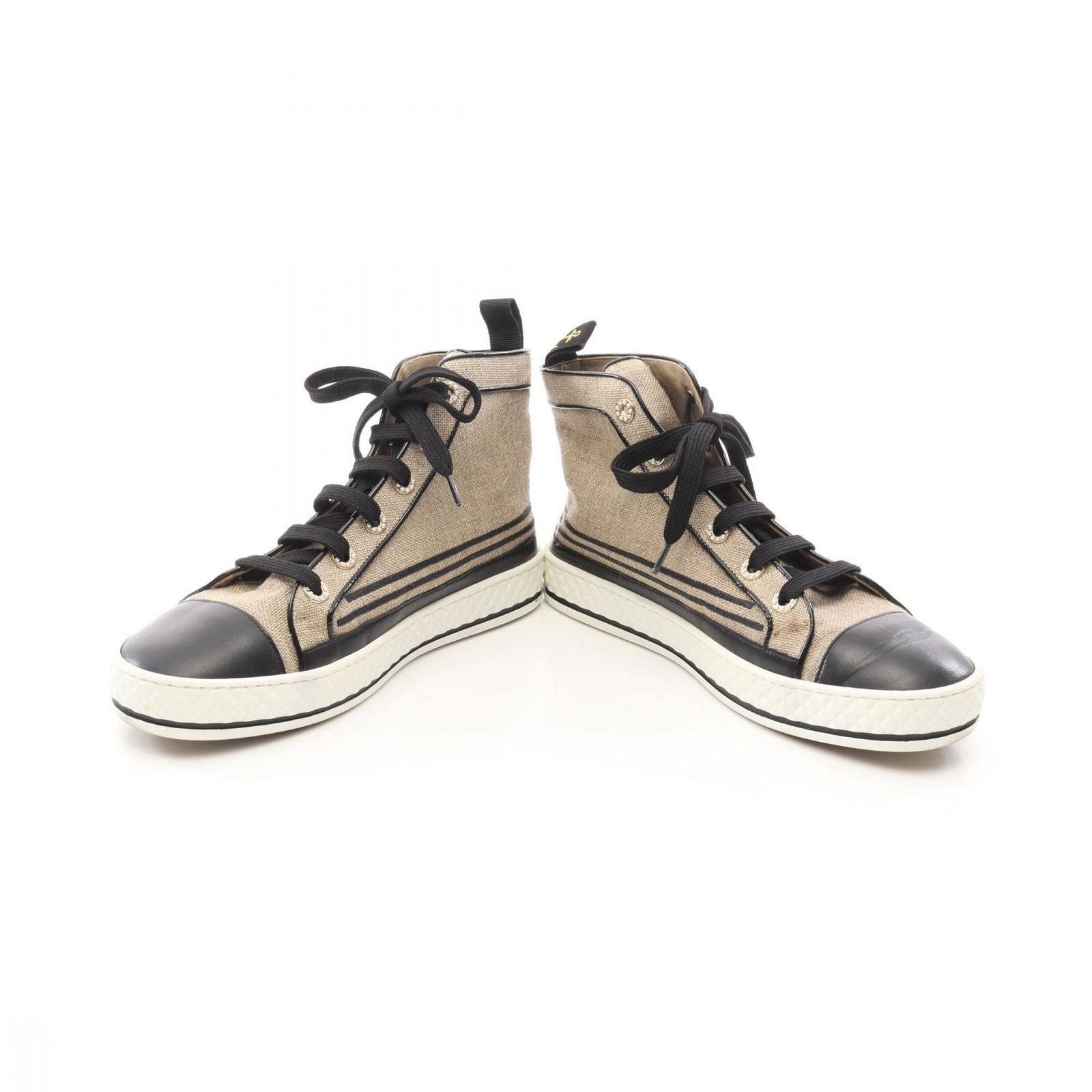 CHANEL Coco Mark High-Top Sneakers in Beige/Black Canvas & Leather