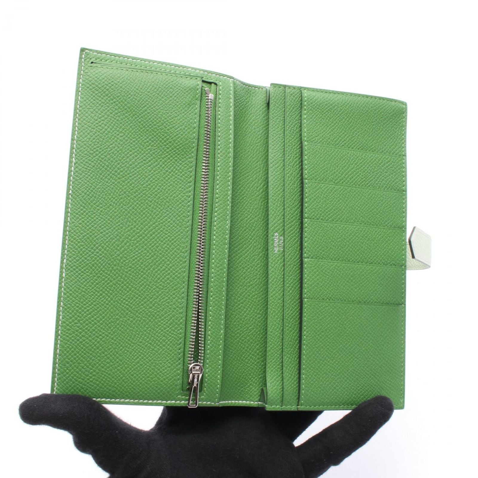 HERMES Green Veil Swift Leather Bearn Wallet - Timeless Elegance